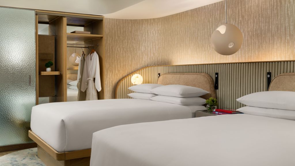 Revel in the comforts of this 350-square-foot room with two plush queen beds and an accessible bathroom, stocked with upscale necessities including luxury linens and a locally curated minibar.