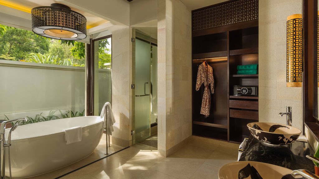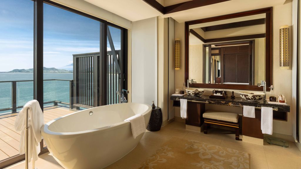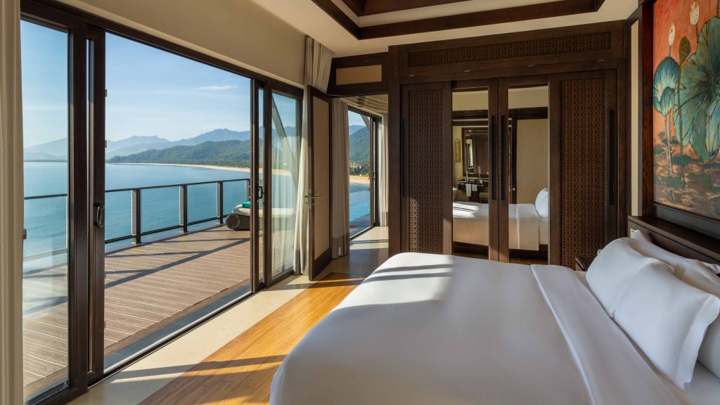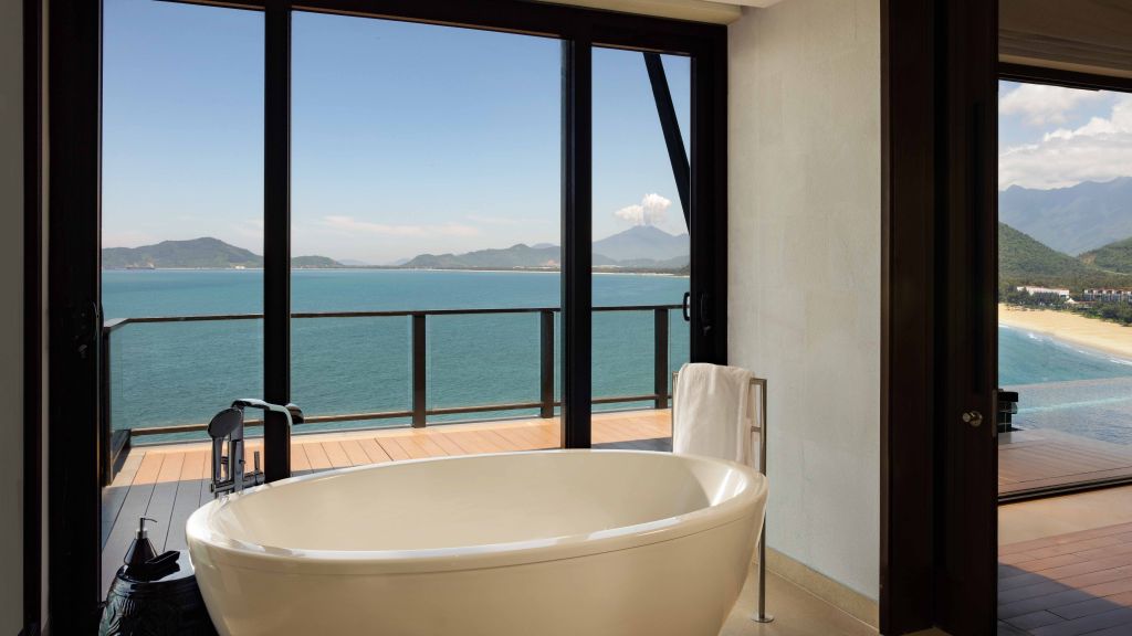 Features 2 King beds, 1 Twin bed, spacious living spaces, large swimming pool, jet pool, lush bedrooms with separate bathrooms, a dining area and gourmet kitchen. With panoramic views of the East Sea, this villa provides the ideal privacy and space for family or friends travelling together.