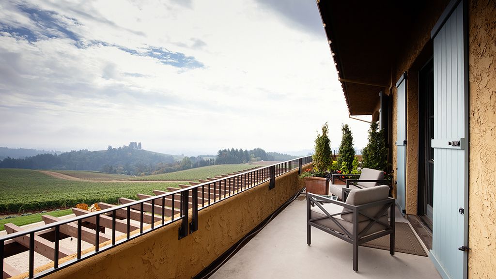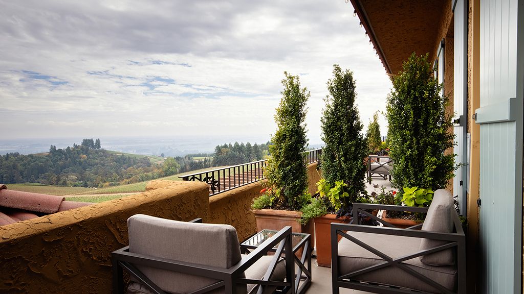 Black Walnut Inn & Vineyard is located an hour from Portland, overlooking the Willamette Valley in Dundee, Oregon.