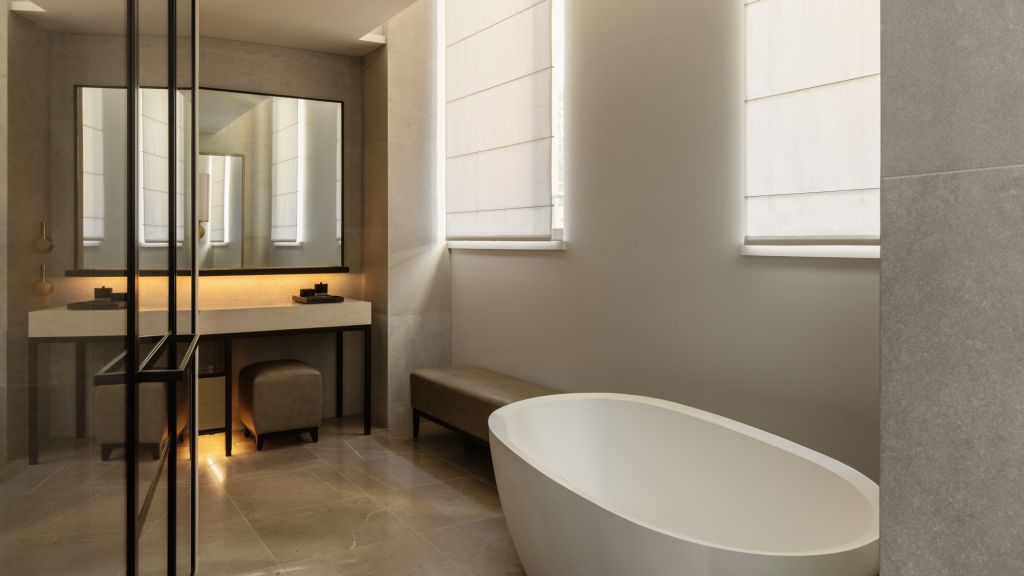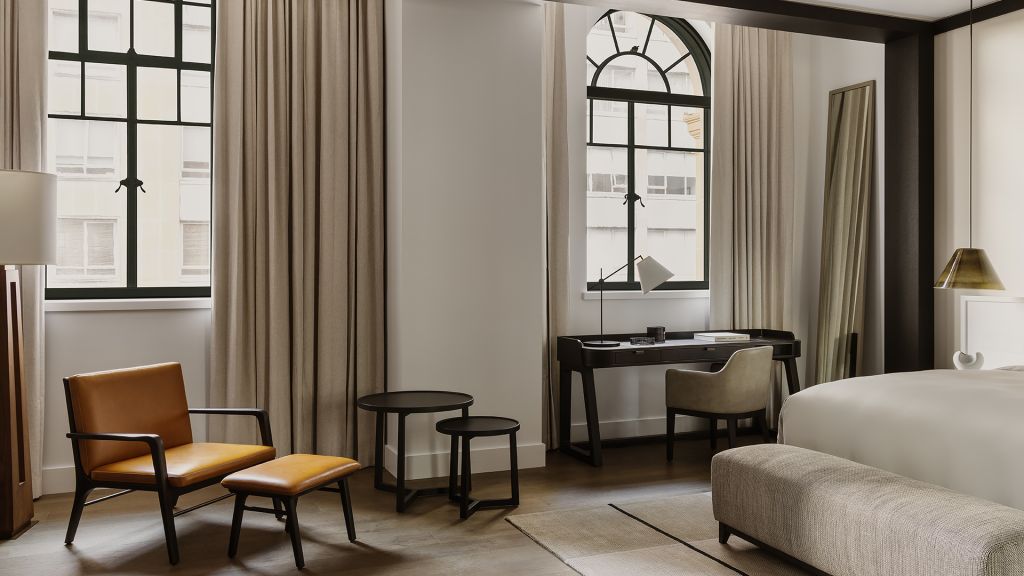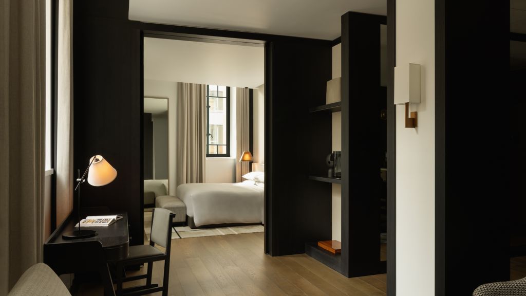 Step into an urban oasis and unwind in the elegantly timeless surrounds of a Deluxe Suite. Wrapped in heritage-listed walls, be transported to a sanctuary in the heart of the city that boasts richly detailed interiors and exceptionally curated objets d'art. Showcasing modern design with historic architectural accents, The Deluxe Suite averages 84m² and features high ceilings, separate bedroom and open-plan living spaces, with opulent oversized bathroom, dual vanity, rain shower and sculptural deep-soaking bathtub.