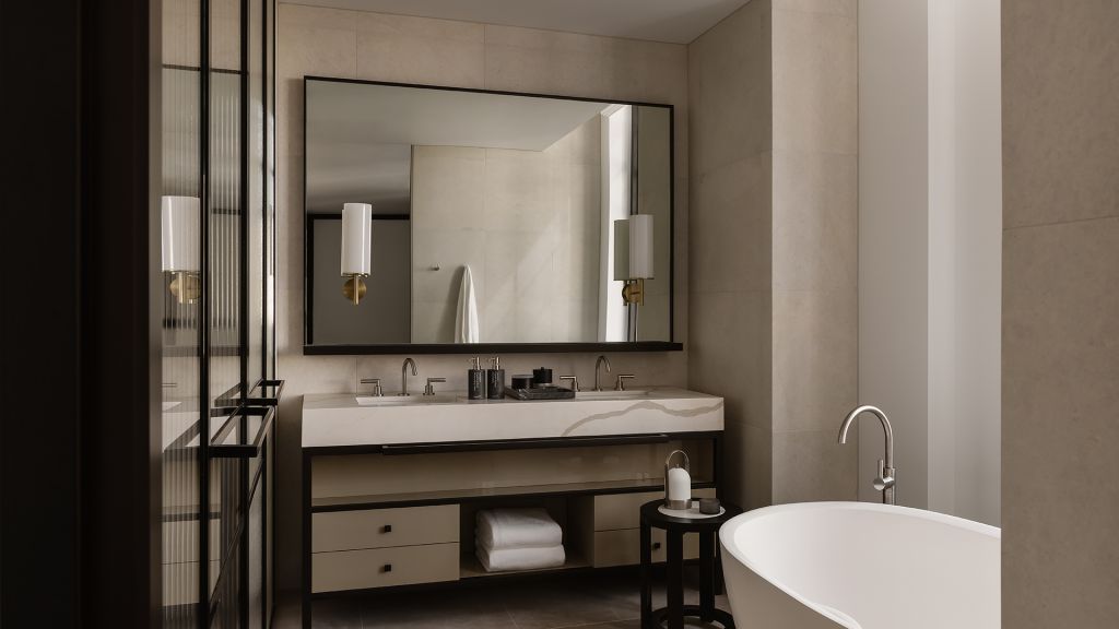 Averaging 52m², the premier king accessible room is generous in its planning, offering additional space for guests who require greater accessibility. The specially designed bathrooms include a larger shower with handrails, while the sumptuously appointed guest room features historic design elements with sleek furnishings and curated artworks.