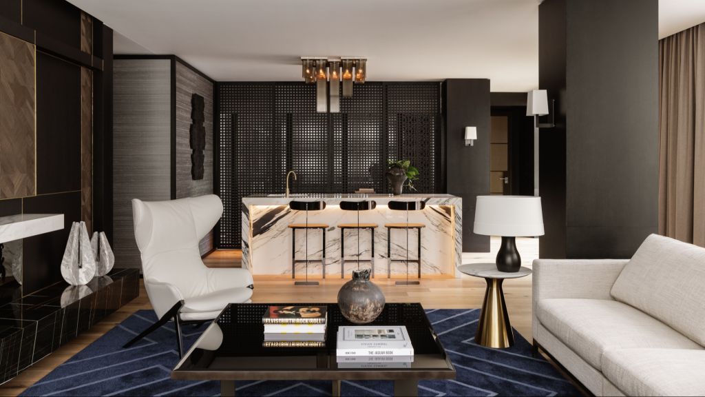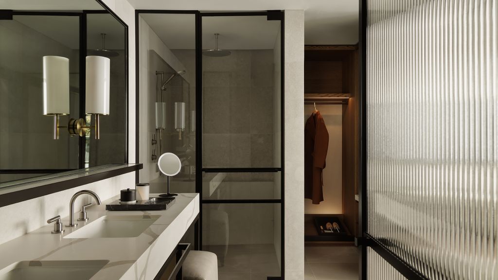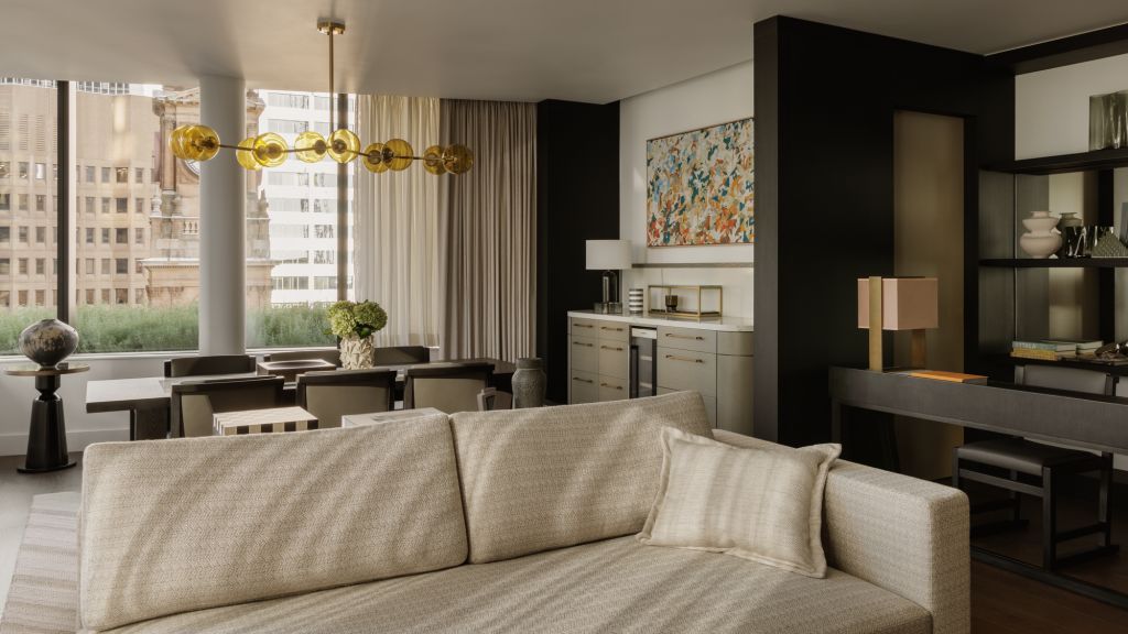 Discover sophisticated respite that elevates guests from the bustle of the city. Skyline rooms allow guests to experience city skyline views from the comfort of their highly-appointed retreat. Skyline rooms average 65m² and offer richly detailed bedroom and living spaces framed by expansive full-length windows that welcome in an abundance of natural light. Guests are also treated an indulgent bathroom with double vanity, rain shower and deep-soaking bathtub.