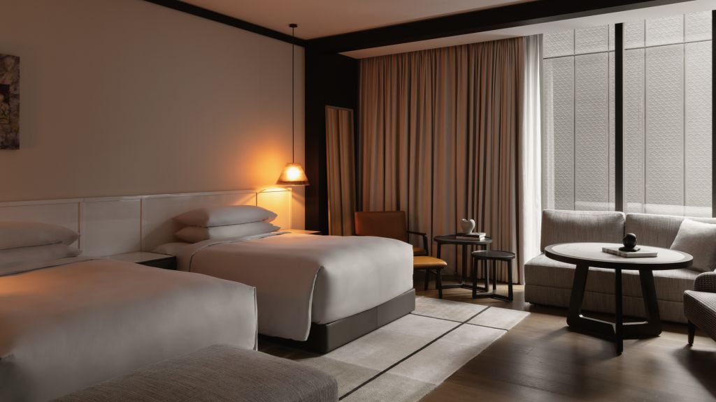 Relish in an exquisite blend of timeless luxury and modern comfort when you immerse yourself in the enchanting features of our skyline suite. soak in the sights of the spectacular cityscape through capacious full-length windows as you unwind in an opulently appointed space. Bathed in natural light, the skyline twin suite averages a spacious 95m² and is a seamless blend of heritage and contemporary. Guests are treated to generous living and bedroom spaces adorned with lavish furnishings and artworks as well as a luxurious oversized bathroom with dual vanities, rain showerheads and deep-soaking bath.