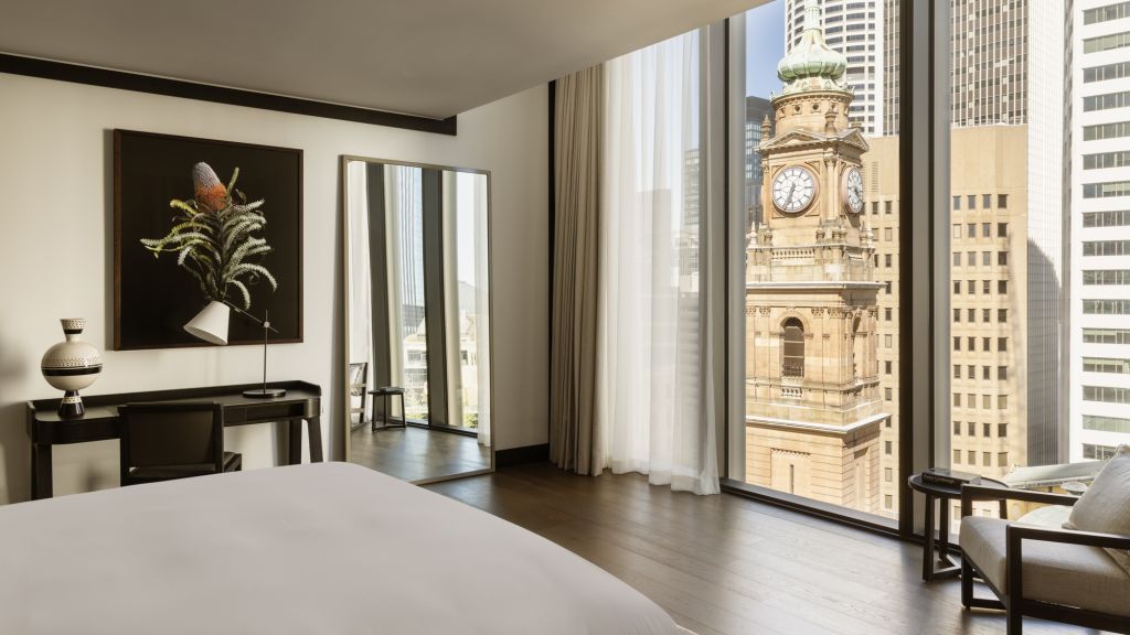 Immerse yourself in the harmonious balance of historical and contemporary when you step into a tower room. Overlooking the clock tower of the department of lands, admire the intricate architecture style of the victorian renaissance revival and the glittering city lights as you unwind in meticulously curated luxury. Tower rooms offer generous room layouts that average 45m² and feature full-length windows that invite in magnificent vistas of the historical heart of sydney.