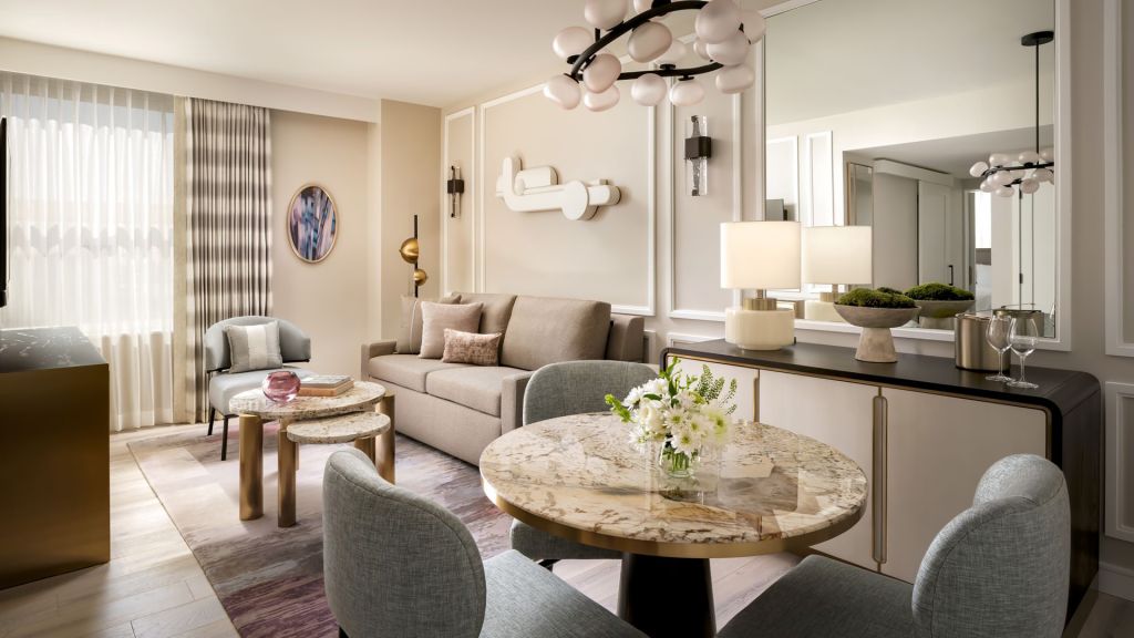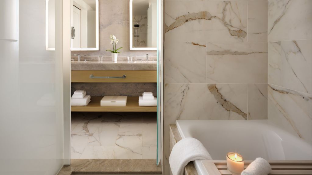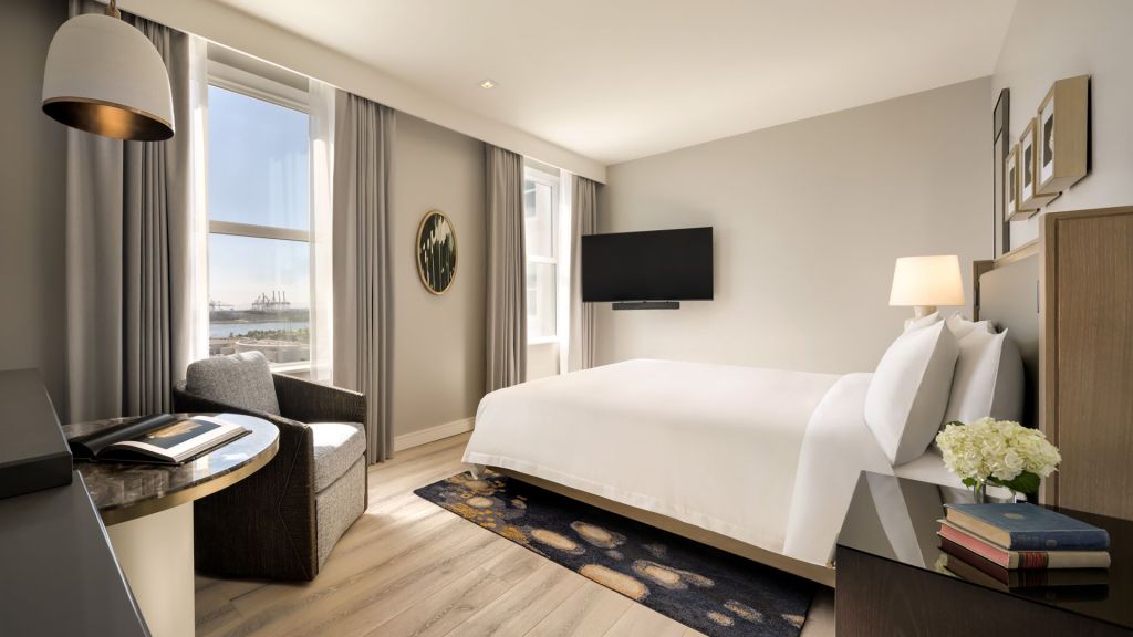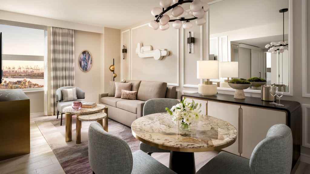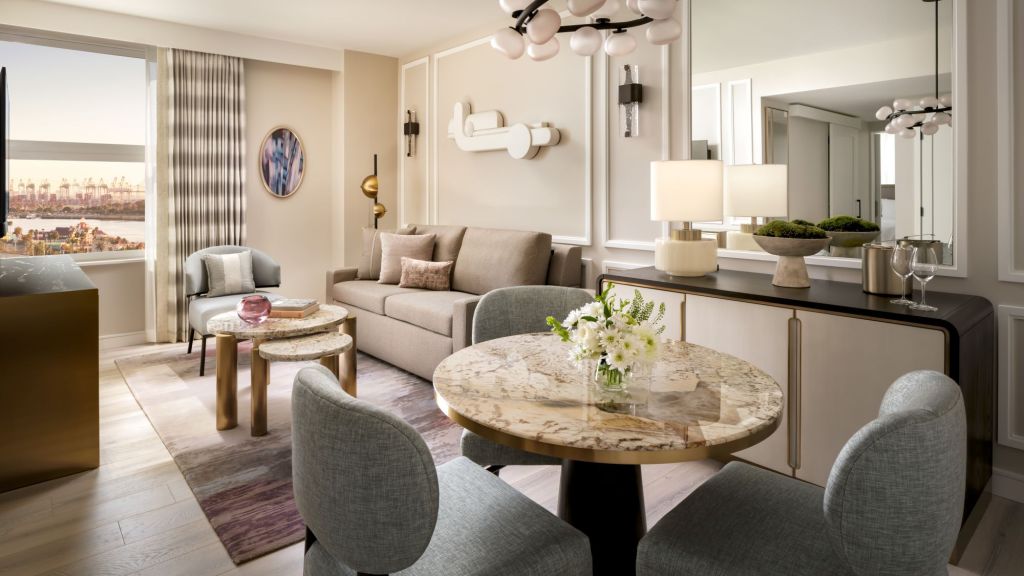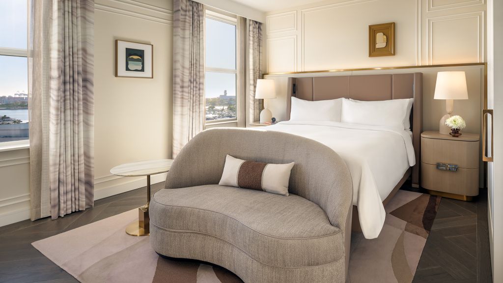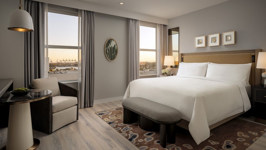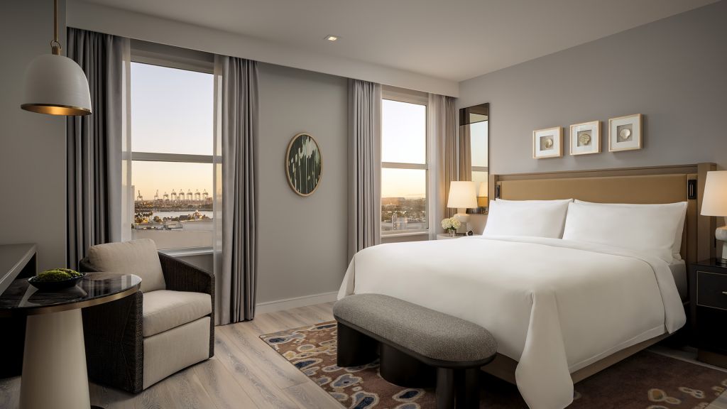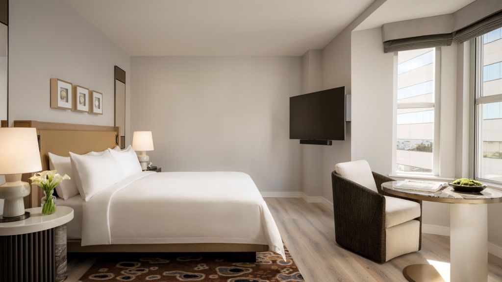 Step inside and discover 185 elegantly appointed guest accommodations, each bathed in natural light and enhanced with modern technology. Thoughtfully designed, these rooms feature marble bathrooms, plush furnishings, and a serene color palette of coastal blues and calming whites.
