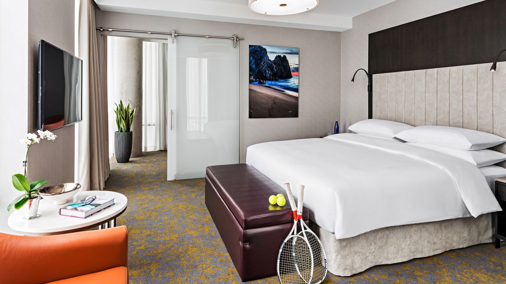 From leisure to wellness, Hotel X Toronto offers a remarkable range of amenities. Take in panoramic city views from the 55-foot rooftop pool, or enjoy exclusive access to 10XTO Athletic Club, the hotel’s state-of-the-art athletic facility, featuring the latest equipment, glass-backed squash courts, indoor tennis courts, and private sports coaching. Guests can also explore a curated art gallery and enjoy screenings in the hotel’s 250-seat cinema.