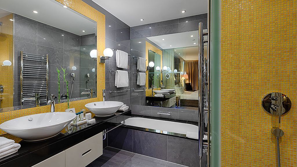 Classic junior suite - two twin beds or one king bed, mountain view. The rooms feature flat screen tv, wi-fi, tea and coffee maker, minibar, safe and air condition. Desk with direct dial telephone and a cordless telephone for in-house use and sofa bed. The bathroom includes a bathtub and a separate shower cabin as well as separate toilet with underfloor heating. Spacious balcony with sitting facilities. Maximum capacity: 2 adults and 1 child or 3 adults. 44 sqm large.