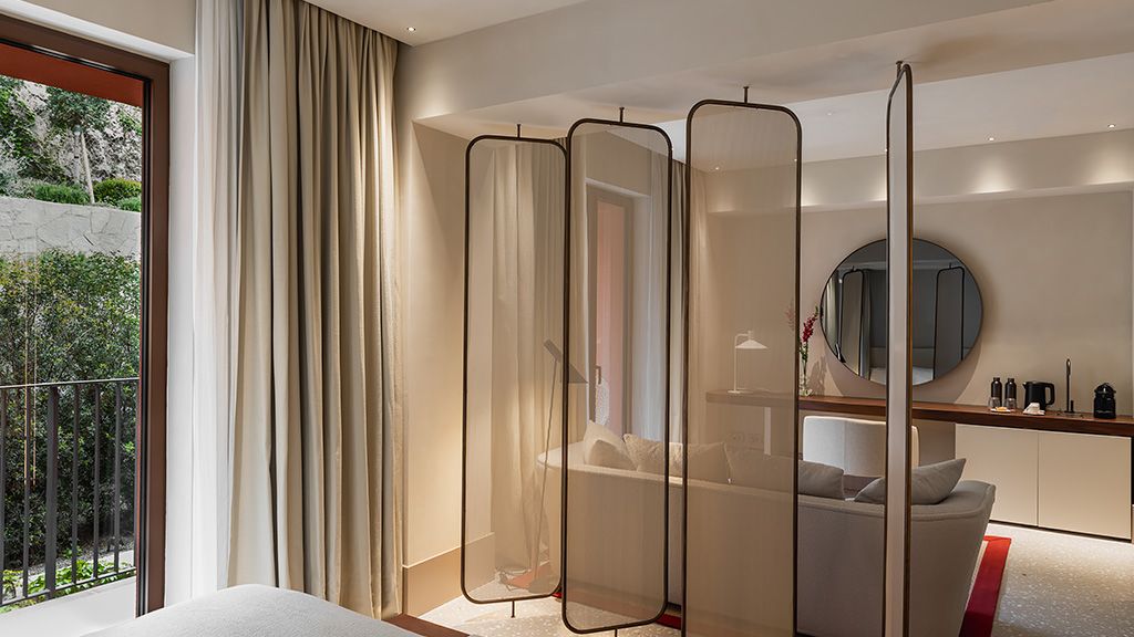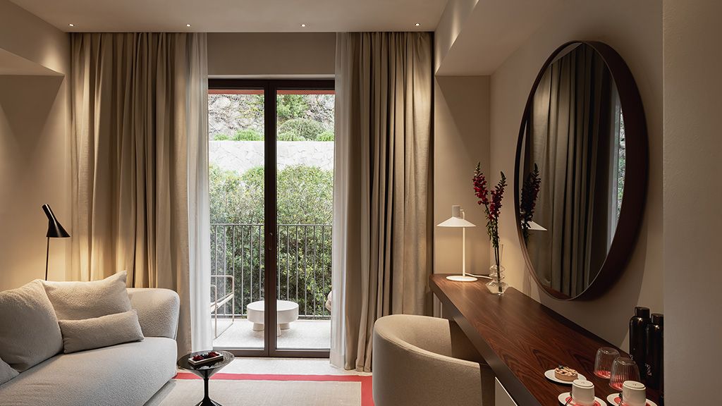 Filippo sea view terrace suite- 48 sqm- living area- sofa- dining table- 32 sqm terrace- air conditioning-