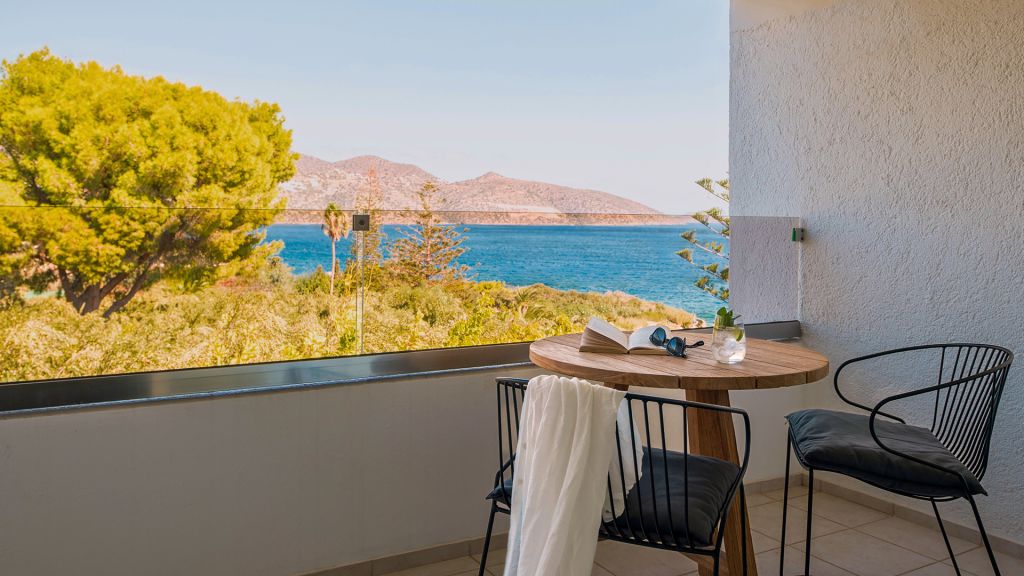 46 sqm, double bed, upper floor, balcony, views of Mirabello Bay, one bedroom, living area, large walk-in-shower