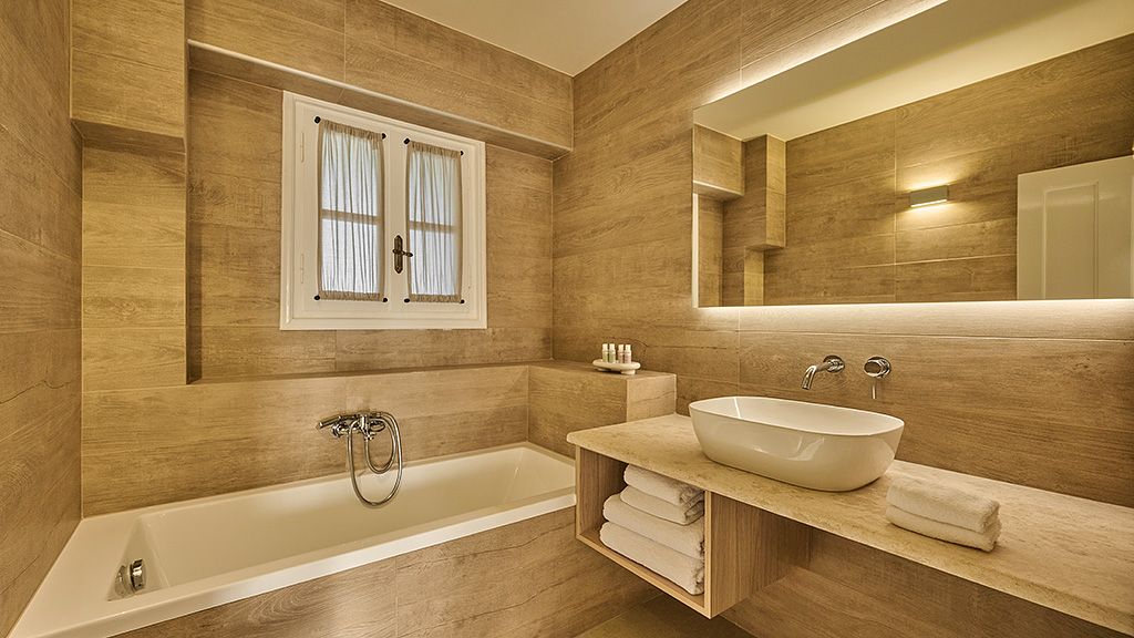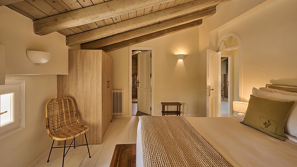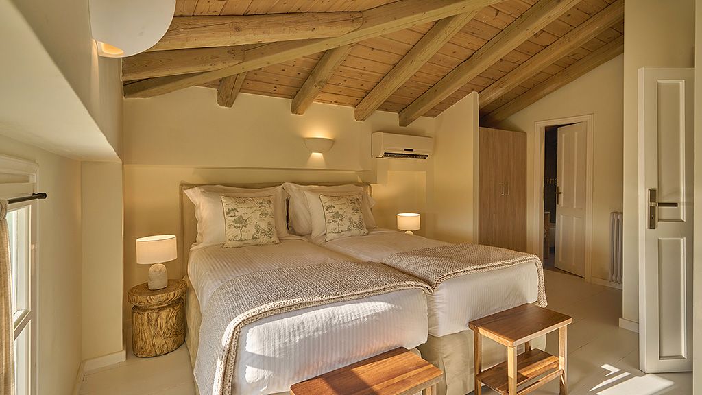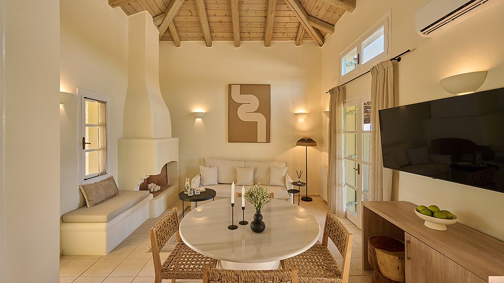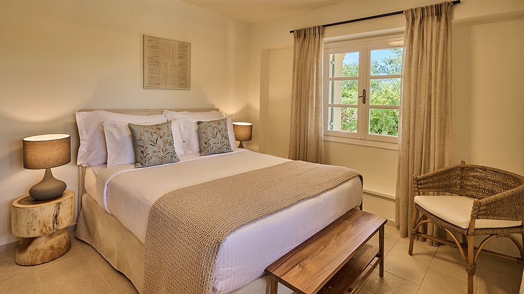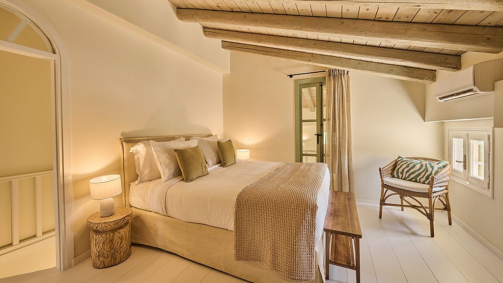 The signature suite offers a complete feeling of indulgence and comfort, furnished with king -size beds. The sleek white and contemporary furniture with blue and wooden details, compose an elegant and tasteful combination. The room offers a private balcony with transparent glass panels to enjoy impressive views of the porto heli bay.