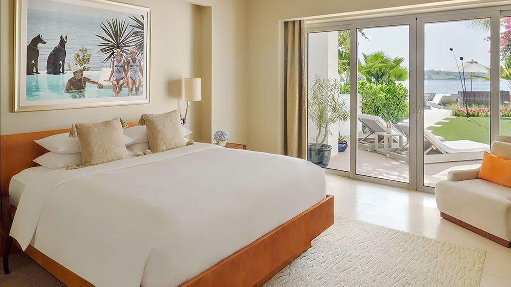 A luxurious 109 sq m (1,173 sq ft) suite offering private patios with direct access to the Family Lagoon Beach, featuring Mediterranean-inspired décor and separate bedroom