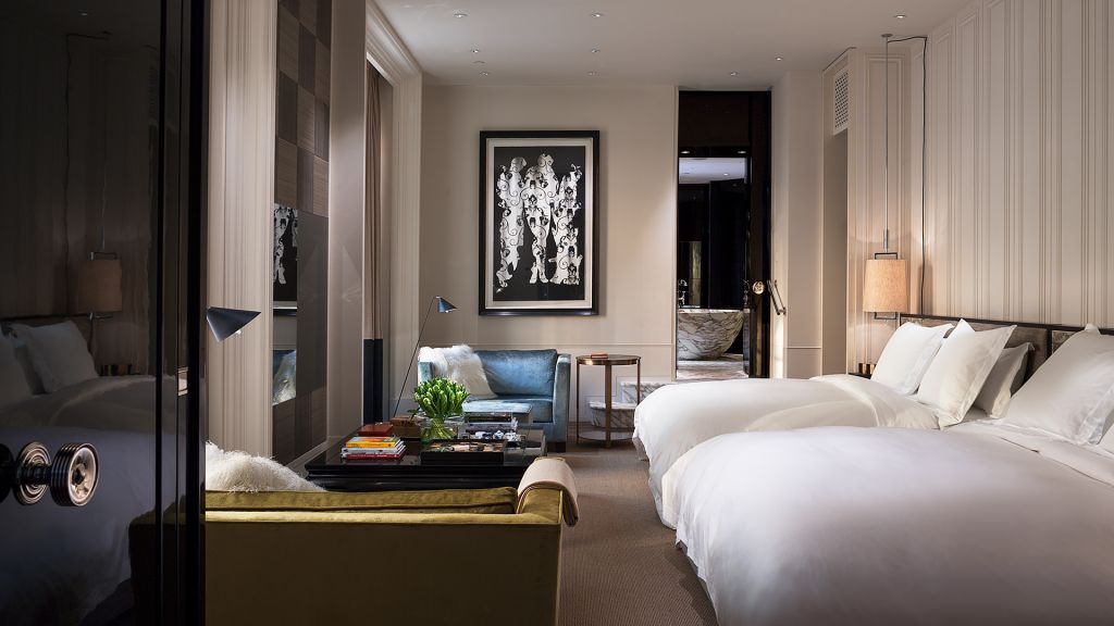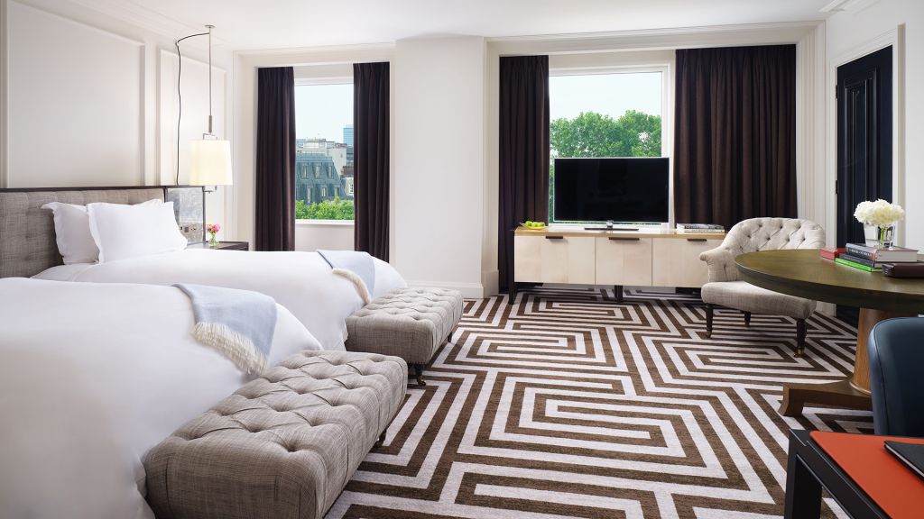 Size: 31 sq. M. (334 sq. Ft.) view: various bedding: two single beds offering plush comfort and elegant style in equal measure, this luxurious room captures the heritage and charm of a modern london residence and averages 31 square meters (334 square feet). The airy urban refuge features two oversized single beds, bespoke furnishings, and a handsome marble bathroom with bath / shower combination. Connecting room options are available. Additional room details extra bed: available upon request location: floors 1-7 bathroom: one bathroom occupancy: three services & amenities -complimentary wi-fi (high definition streaming quality) -nespresso coffee machine -voltary toiletries -salon-grade hairdryer -bathrobes -46-inch led television -twice-daily housekeeping with evening turndown service -24-hour room service