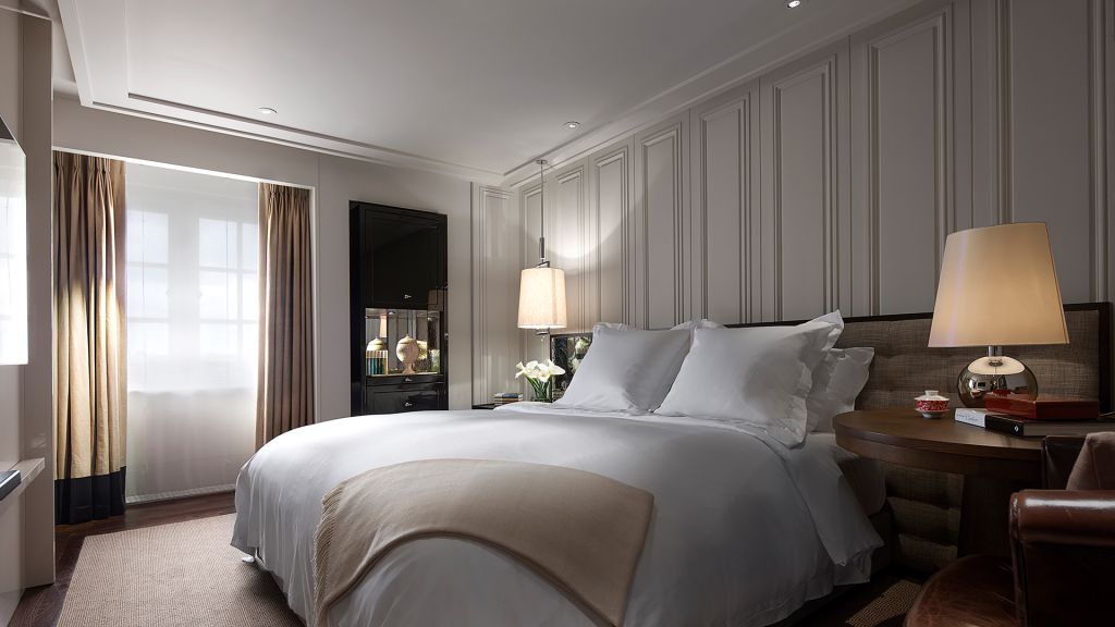 Size: 60 sq. M. (646 sq. Ft.) view: various bedding: one king bed this one-bedroom suite combines a refined british manor house style with contemporary sophistication. Featuring bespoke furnishings and state-of-the-art technology, the 60 square meter (646 square foot) suite comprises a separate living room, an airy bedroom with a king bed, and a marble bathroom with a bath and separate walk-in shower. Connecting room options are available. Additional room details extra bed: available upon request location: floors 2-6 bathroom: one bathroom occupancy: two services & amenities -complimentary wi-fi (high definition streaming quality) -nespresso coffee machine -voltary toiletries -salon-grade hairdryer -bathrobes -46-inch led television -twice-daily housekeeping with evening turndown service -24-hour room service