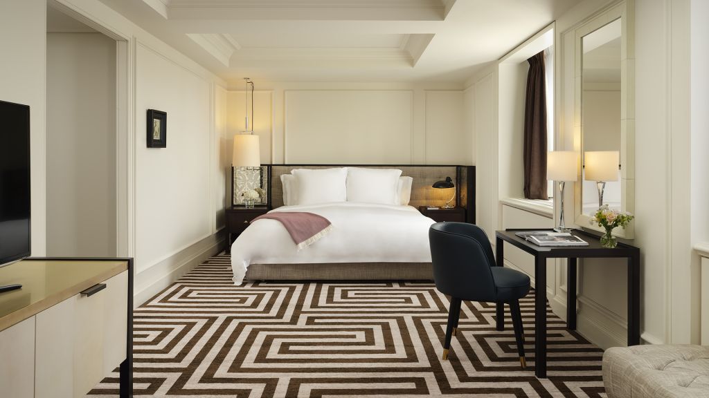 Size: 37 sq. M. (398 sq. Ft.) view: various bedding: one king bed rosewood london’s most spacious room presents a soothing blend of comfort and style. The stately, 37 square meter (398 square foot) chamber features exquisite design and a host of thoughtful amenities. It offers a king bed, tufted armchairs, a large oak table, and a roomy marble bathroom with a deep soaking tub or rain shower. Additional room details extra bed: available upon request location: floors 1-7 bathroom: one bathroom occupancy: three services & amenities -complimentary wi-fi (high definition streaming quality) -nespresso coffee machine -voltary toiletries -salon-grade hairdryer -bathrobes -46-inch led television -twice-daily housekeeping with evening turndown service -24-hour room service