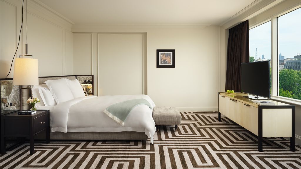 Size: 29 sq. M. (312 sq. Ft.) view: various bedding: one king bed offering plush comfort and elegant style in equal measure, deluxe rooms capture the heritage and charm of a modern london residence. The airy urban refuges are among the largest deluxe rooms in the city, averaging 29 square metres (312 square feet), and also among the most luxurious, with sumptuous bespoke furnishings and handsome italian marble bathrooms. Additional room details extra bed: not available location: floors 1-7 bathroom: one bathroom occupancy: two services & amenities -complimentary wi-fi (high definition streaming quality) -nespresso coffee machine -extensive pillow selection -voltary toiletries -salon-grade hairdryer -bathrobes -46-inch led television -butler service -twice-daily housekeeping with evening turndown service -24-hour room service