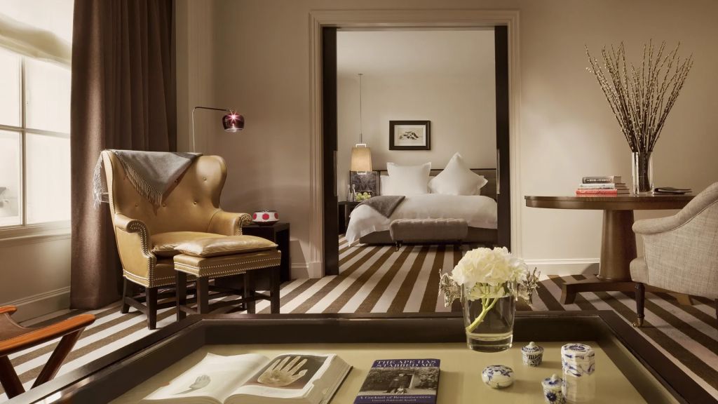 Size: 85 sq. M. (915 sq. Ft.) view: high holborn or courtyard bedding: one king bed this impeccably elegant one-bedroom suite combines a refined british manor house style with contemporary sophistication. Featuring bespoke furnishings, countless decorative touches, and state-of-the-art technology, the 85 square meter (915 square foot) suite comprises a foyer, a large living room, an airy bedroom with a king bed, a marble bathroom with bath, and a separate walk-in shower. Connecting room options are available. Additional room details extra bed: available upon request location: floors 1-4 bathroom: one bathroom and one guest powder room occupancy: three services & amenities -complimentary wi-fi (high definition streaming quality) -nespresso coffee machine -voltary toiletries -salon-grade hairdryer -bathrobes -46-inch led television -twice-daily housekeeping with evening turndown service -24-hour room service