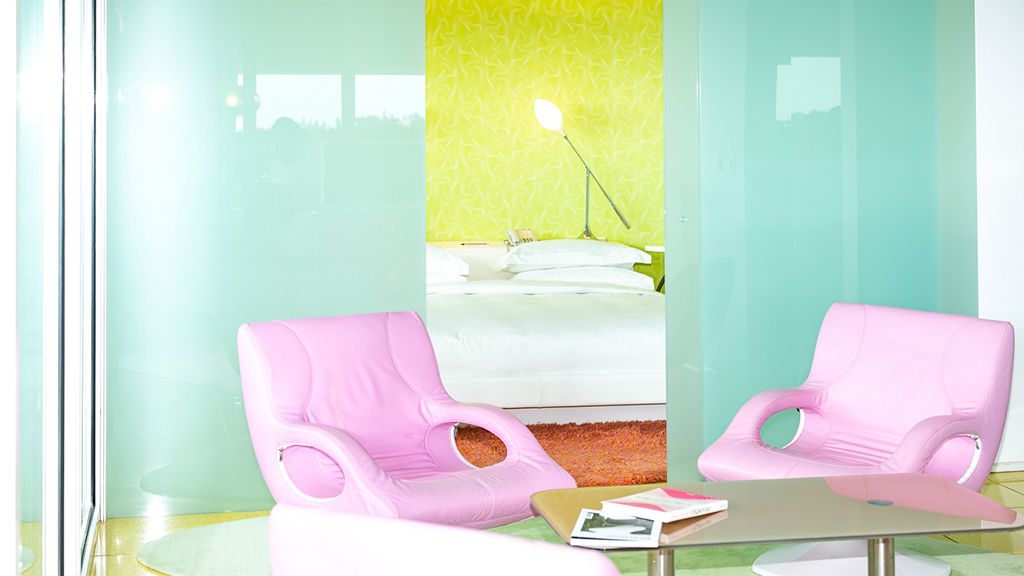 Commissioned to the notoriously experimental industrial designer Karim Rashid, the décor of the Semiramis Hotel is both playful and thoughtful. While luxury hotels often err on the side of conservative, aristocratic touches, Rashid refuses to look to the past, and instead has infused the rooms with pinks, yellows, blues, glitz, glam, and his own personal artwork.