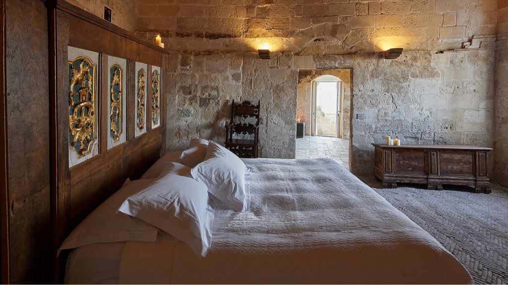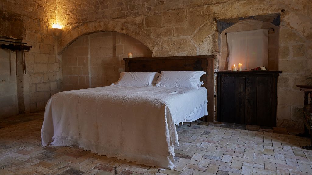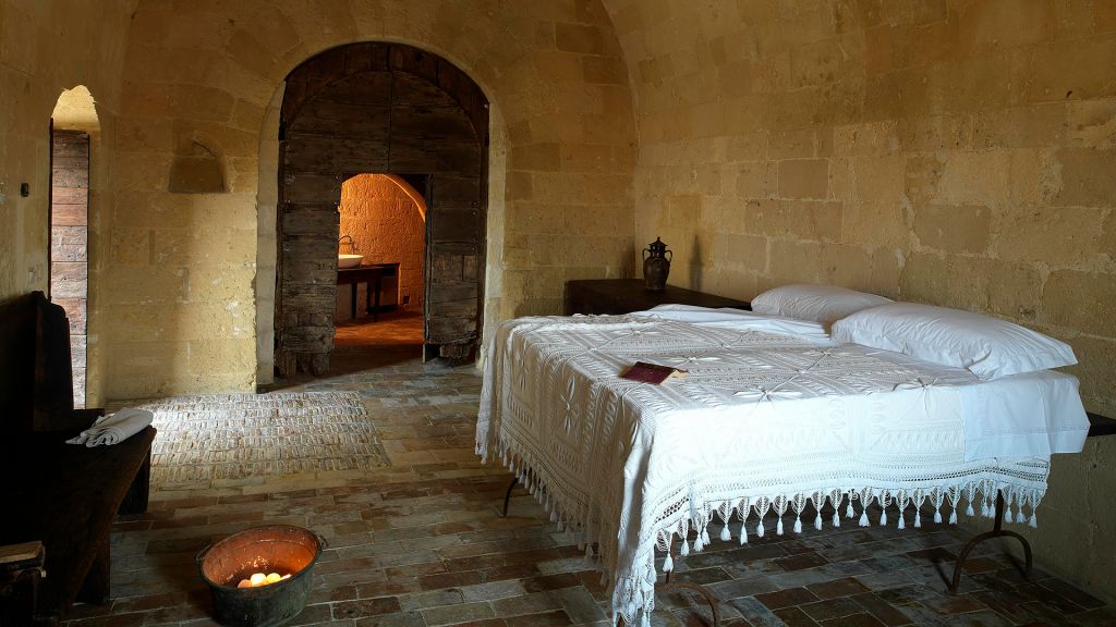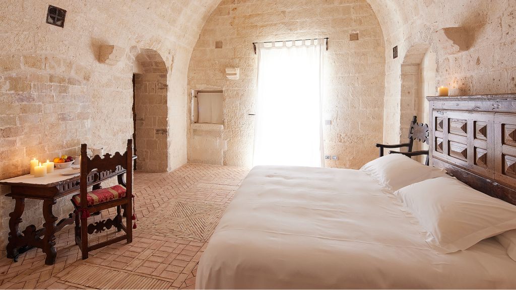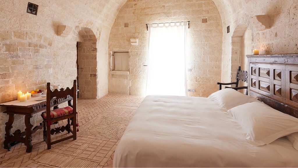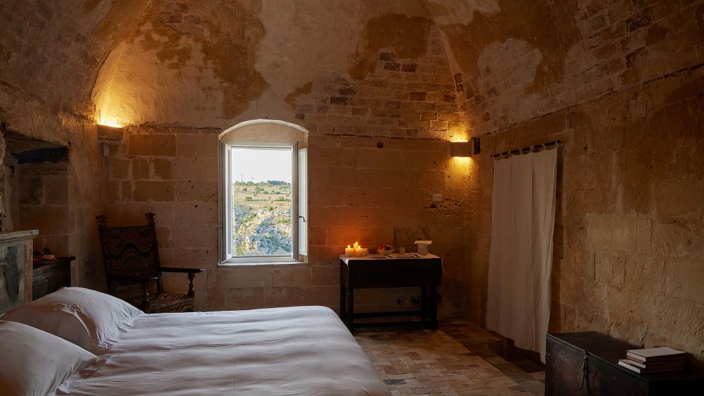 At Albergo Sextantio Le grotte della Civita, guests get a true taste of Matera's Sassi. Restored with ultimate respect to local tradition, these 9,000-year-old Italian cave homes are serenity incarnate.