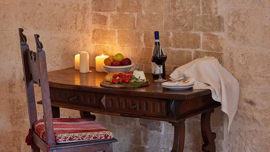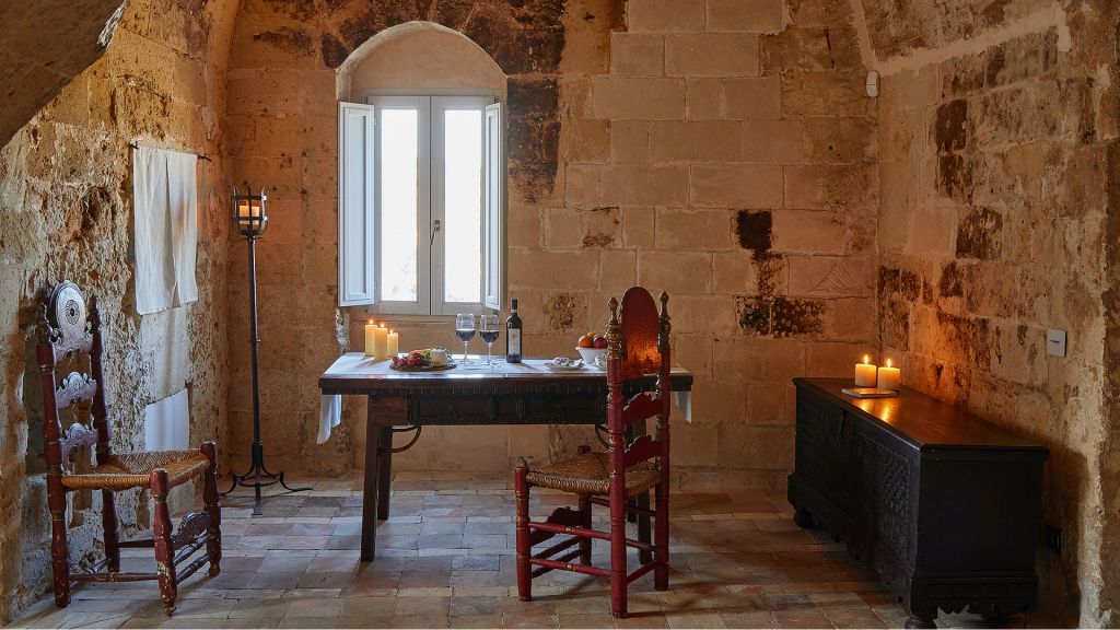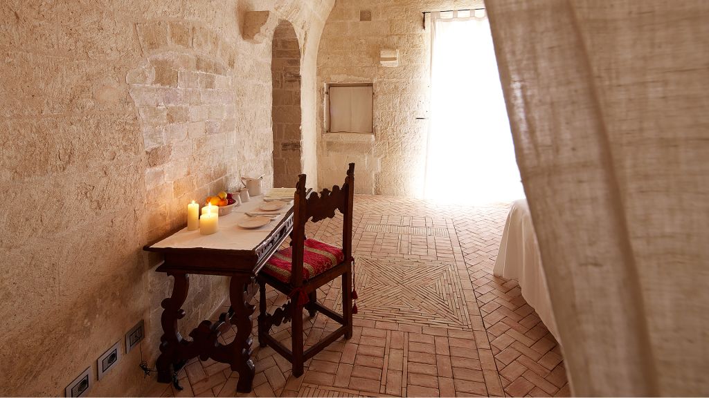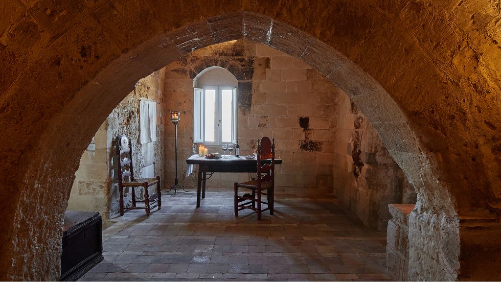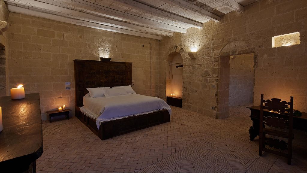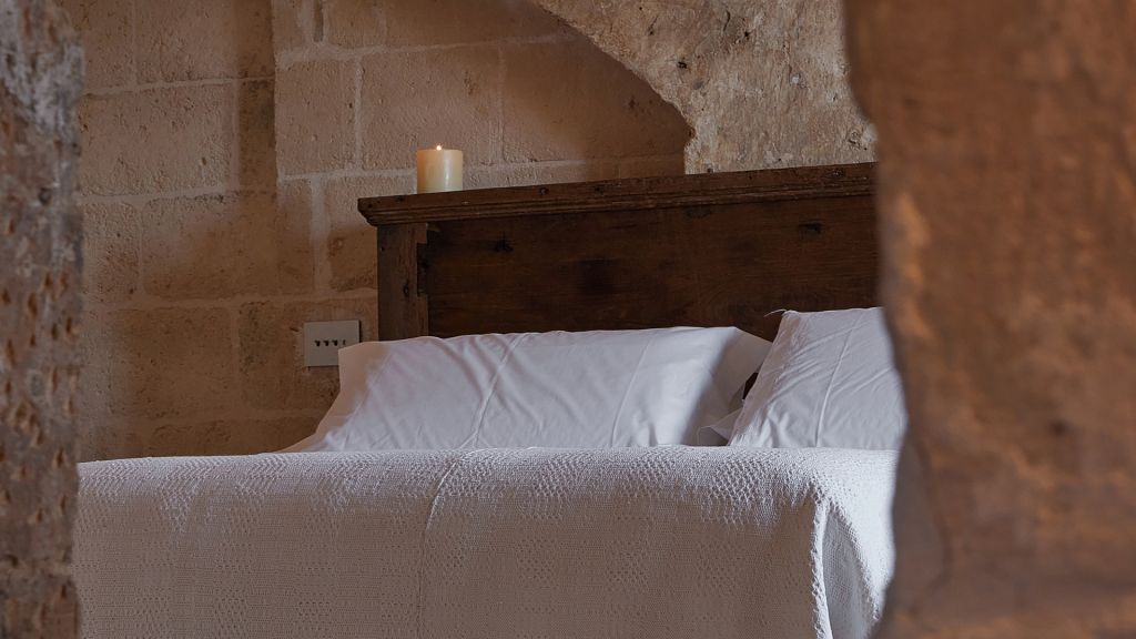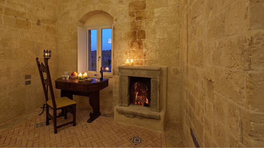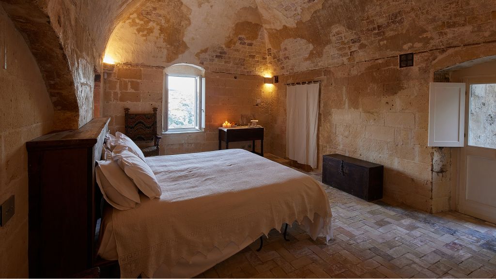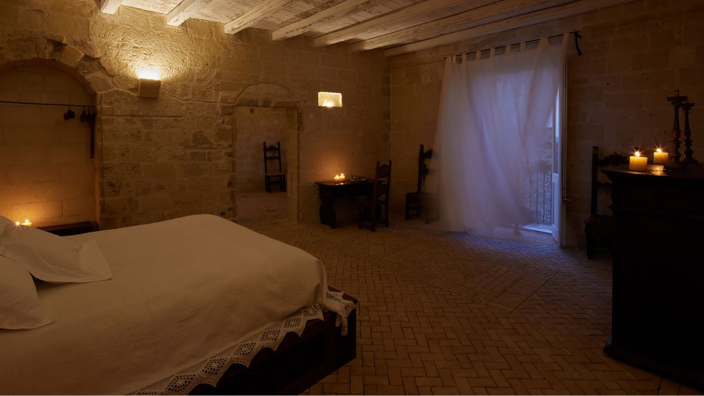 Trekking throughout Sassi provides almost endless curiosities, but guests here may opt to spend a day of recluse in the cave: reading a book, sharing a heartwarming meal in the main atrium, or slowly enjoying a glass of wine in the bath.