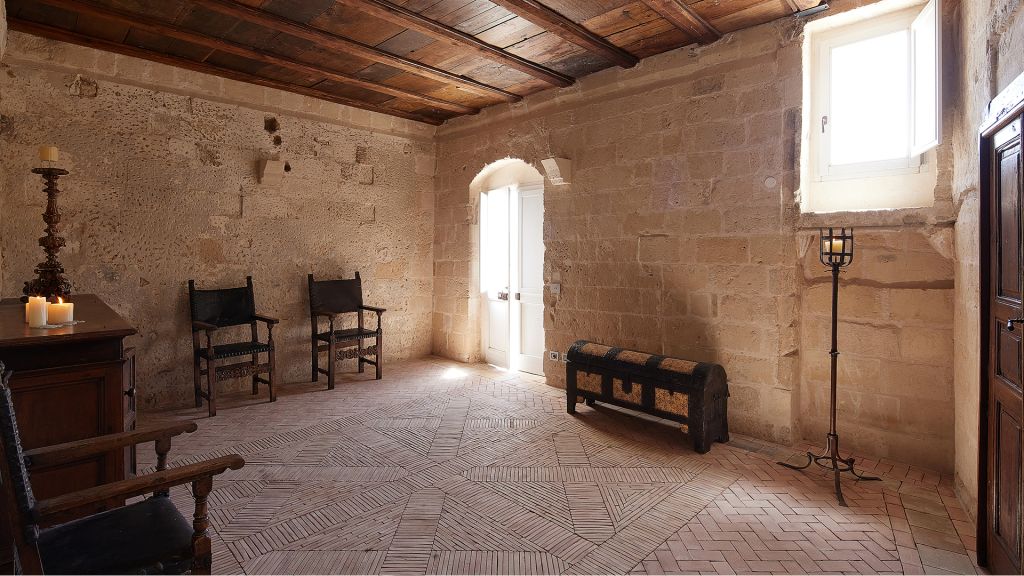 The grandest of rooms, the presidential suite is perfect for large families or friends’ groups traveling together. The recently restored suite housed in a xvii century palazzo has stunning views over the valley and the sassi di matera. The suite, which sleeps 6, features a common area, two bedrooms, two toilets with bathtub and shower, and a sitting room with a fireplace. Extra beds upon requests. Extra beds and baby cot are free of charge and available on request.