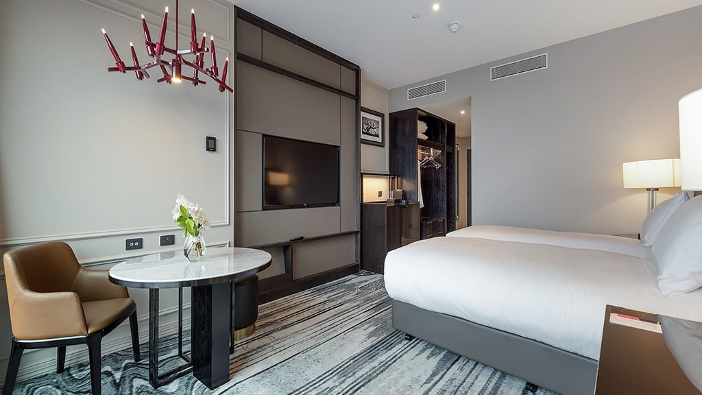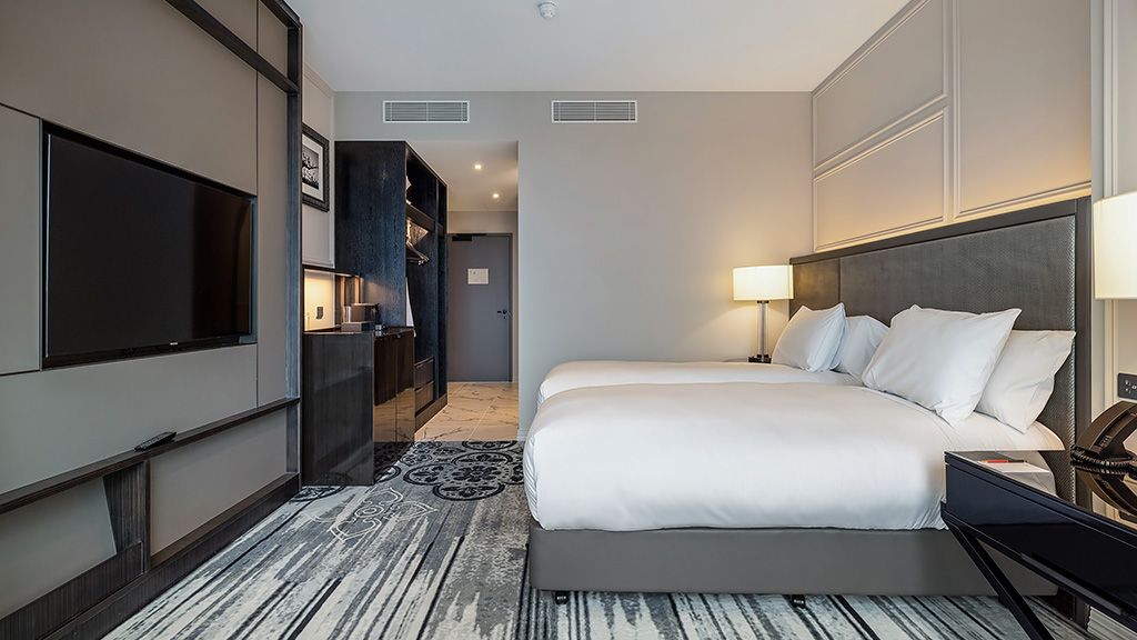 Refined and inviting, unwind in your contemporary French vintage decor inspired Luxury room with a designer bathtub and separate shower. Enjoy the spacious open plan twin bedded room whilst enjoying the latest smart entertainment system.