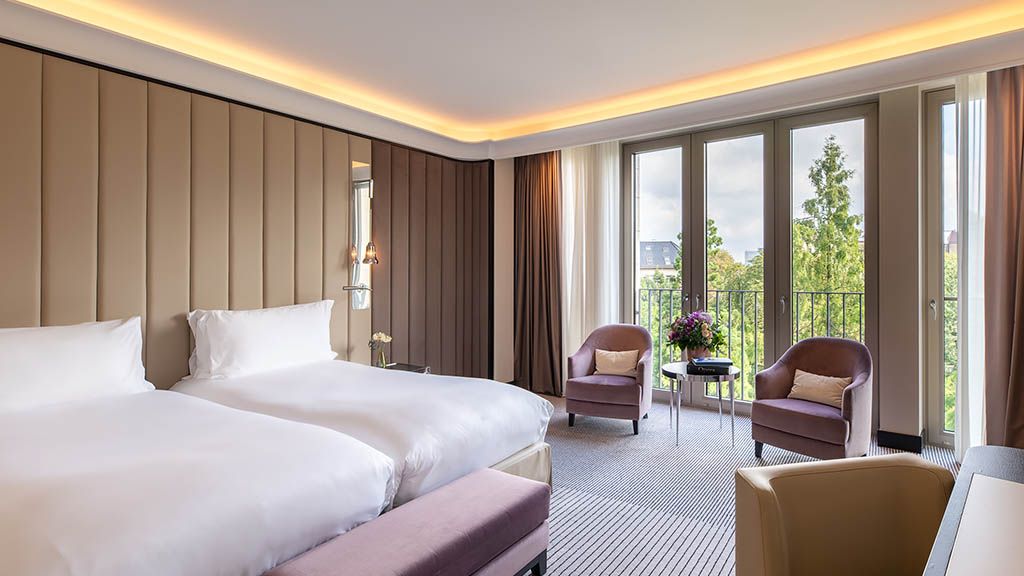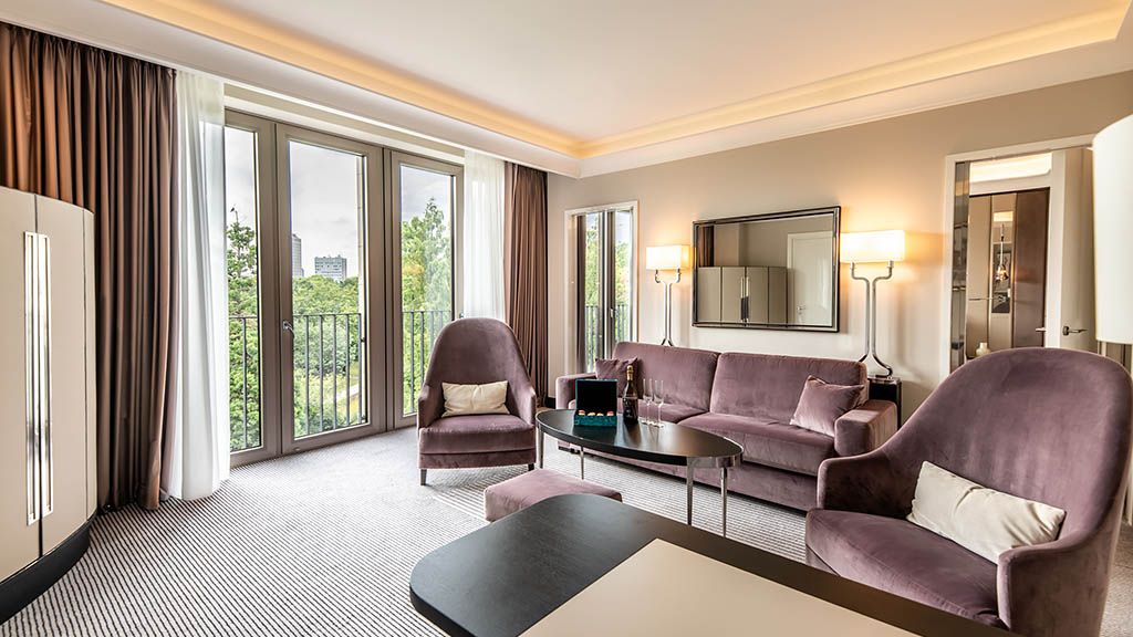 Features a separate living and sleeping area, the exclusive Sofitel MyBed, complimentary Wi-Fi, flat screen TV, Hermès amenities, and high-quality furnishings. Views of the Alte Oper (old opera house) or the park.